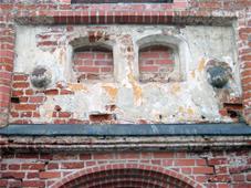Atkuriant kiemo fasadų kompoziciją, vienų elementų atstatymas buvo pagrįstas pakankama architektūrinių tyrimų medžiaga, antrų – autentiškais fragmentais ir interpretacija, o trečių tik laisva improvizacija. Pastaruosius, kaip labiausiai klaidinančius žiūrovą, pravartu aptarti plačiau. Šiaurinės sienos ir vakarinio rizalito sandūros antrame aukšte įkomponuotas laiptinės erkeris yra hipotetinis, sukurtas neturint jokių autentiškų fragmentų[13]. To paties rizalito galinę sieną vainikuojantis frontonas sukomponuotas net neturint duomenų, ar iš tikrųjų šioje pastato dalyje frontono būta[14], o ką jau kalbėti apie architektūrinę jo kompoziciją. Kiemo fasado kompoziciją savaip pakoregavo priešgaisriniai reikalavimai – jais vadovaujantis rytinio rizalito antrame aukšte buvo iškirstos durys ir pristatyti metaliniai laiptai. Tačiau, nepaisant minėtų netikslumų, restauruotas kiemo fasadas, kuriame išlikę daug autentiško mūro, suteikia mums vertingos informacijos apie XVI–XVII a. sandūros architektūrą.
