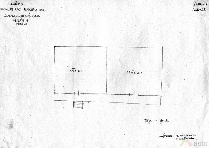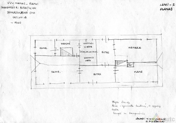1951 m., kai šis namas fiksuotas, jo stogas buvo dengtas šiaudais (tuomet sodyba priklausė Onai Jankauskienei). Kitas svarbus sodybos pastatas – svirnas (šiame krašte vadintas klėtimi). Jis gana didelio tūrio, dviejų patalpų: vienoje laikyti rūbai, kitoje – grūdai. Pastatas su priesvirniu ir dviem atskirais įėjimais. Svirnams būdingi priesvirniai apsaugo duris nuo kritulių, čia sandėliuoti rakandai. Sodybos „gamybinis“ pastatas – nedidelė kalvė – pastatyta greta kelio, kad būtų patogiau atvažiuojantiems klientams.