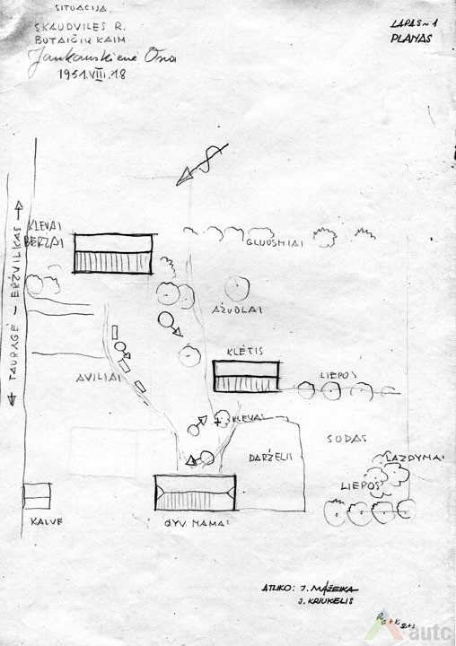 Šią žemaičių sodybą sudaro gyvenamasis namas, svirnas, tvartas ir kalvė. Prie gyvenamojo namo prigludęs gėlių darželis apjuostas tvora. Sodybų apželdinimas buvo itin svarbus jos gyventojams. Sodybą supa ne tik vaismedžiai, bet ir kiti medžiai (gluosniai, ąžuolas, klevai, beržai, liepos, lazdynai). Liepos ir lazdynai susodinti arčiau gyvenamojo namo, o gluosniai riboja kiemą nuo laukų. Gyvenamasis namas (troba) – dvigalis, kurio pagrindinis įėjimas, kaip paprastai, įkomponuotas namo ašyje. Kitoje namo pusėje buvo įtaisytos dar vienos durys. Planavimas būdingas žemaitiškoms troboms: centre kamino patalpa, kitos patalpos dar susmulkintos (kamaros, kambariai, virtuvė su atskira virykle). Langai gana dideli, su langinėmis.