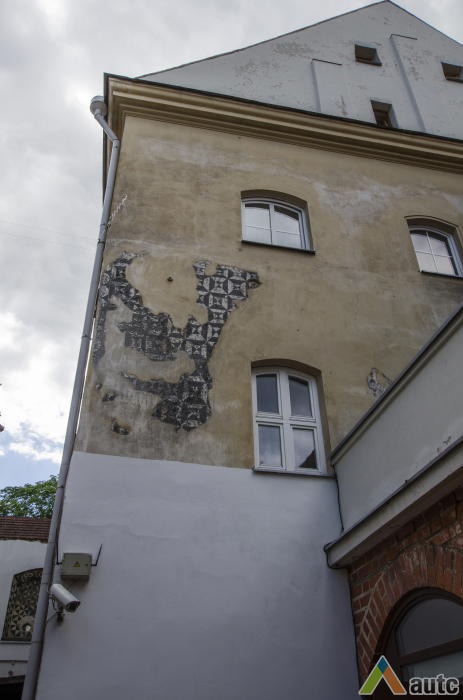 Kai 1970 m. namą pradėjo tyrinėti PKI specialistai, fasaduose buvo atidengti kelių architektūros stilių mūro ir dekoro elementai. Restauruoti namo fasadai demonstruoja įvairių išlikusių stilių paveldą: pirmo ir antro aukšto gotikinį mūrą, pagrindinio fasado apskritas ir arkines nišas, kampu sumūrytų plytų tarpaukštinę juostą bei puošnų gotikinį frizą virš apskritų nišelių. Renesansinis sgrafitas restauruotas arba atkurtas ne tik prie gatvės, bet ir kiemo fasaduose (archit. E. Purlys, dail. Elimyras Mateiča, Juozas Pilipavičius ir Povilas Kuodis). Atstatyto gotikinio laiptuoto frontono buvo išlikusi tik apatinė dalis.