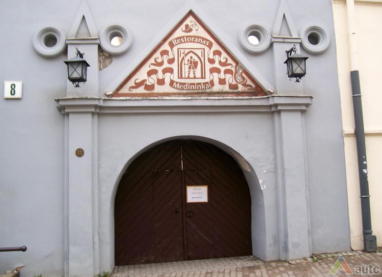 Dabartinis „Medininkų“ restorano pastatas nuo atsiradimo dienos (XV–XVI a. sandūroje) kelis šimtmečius buvo greta stovinčio 10-ojo namo belangis korpusas. XVI a. pab. jis buvo rekonstruotas renesanso stiliumi[1], jo fasadų plokštumos, nišos ištisai padengtos labiausiai paplitusiu trijų sluoksnių sgrafitu. Juodojo sluoksnio dažomoji medžiaga buvo medžio anglis, o baltojo – kalkiniai dažai. Sgrafito motyvais suformuoti frizai, langų apvadai ir kitos architektūrinės detalės[2].
