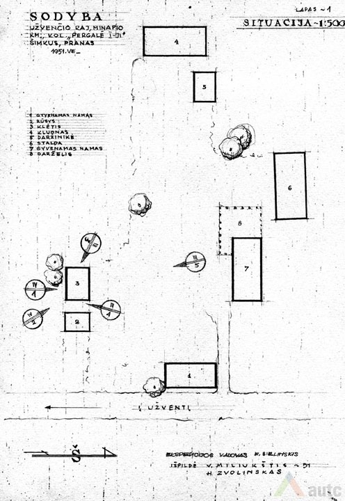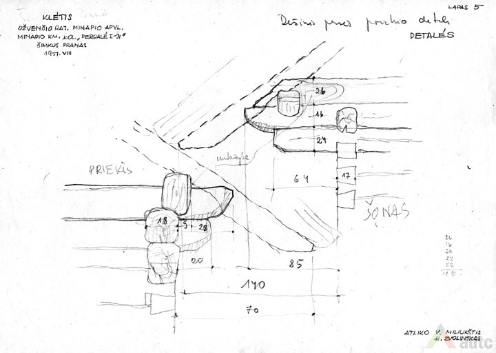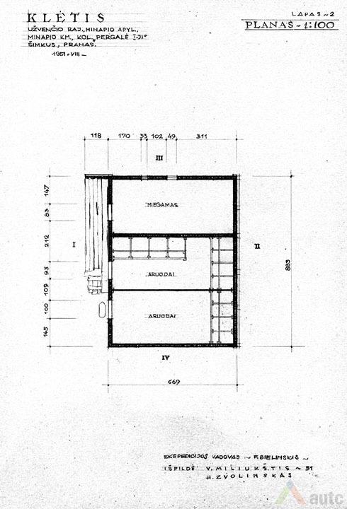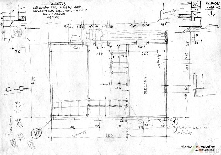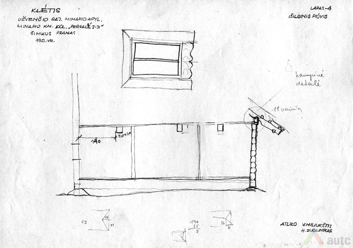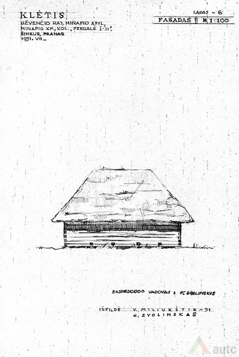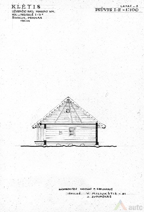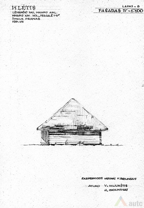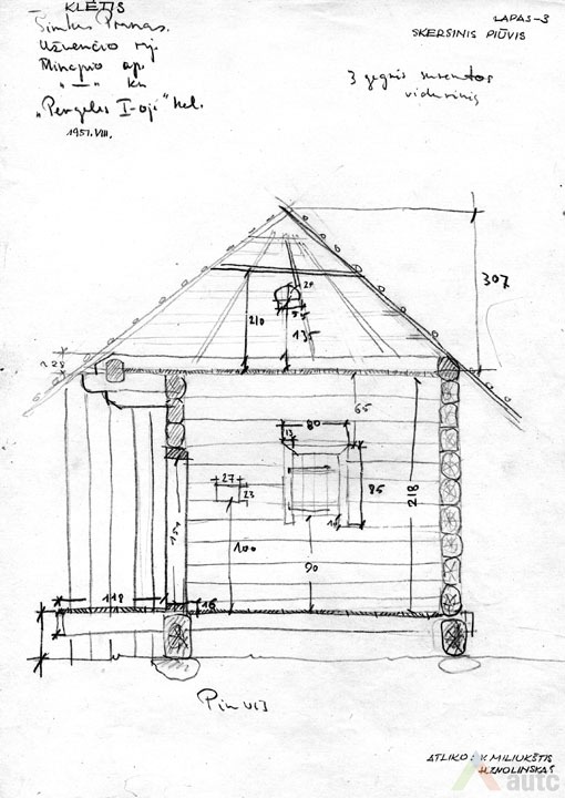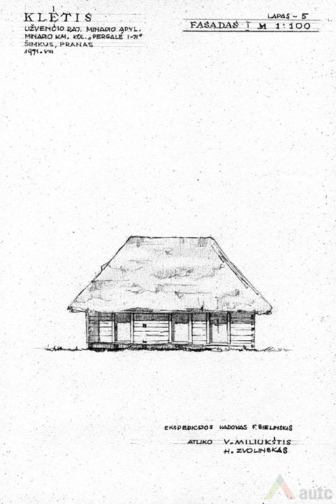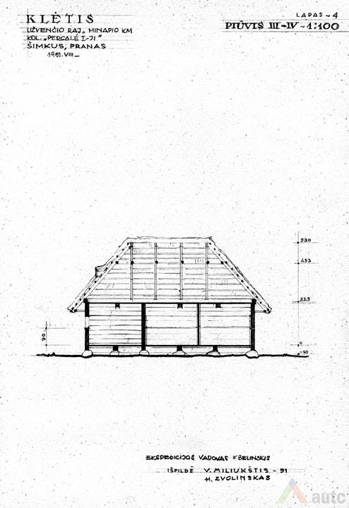 Svirnas (šiame krašte vadintas „klėtimi“), statytas XIX a. viduryje. Tradiciškai skirtas grūdams, maistui laikyti, rakandams sandėliuoti, miegoti. Šis svirnas, kaip įprasta, pastatytas gerajame kieme, priešais gyvenamąjį namą. Suręstas ant didelių lauko akmenų (taip geriau vėdinami grūdai). Pastato tašyti sienojai gražiai suleisti į lygias kertes. Stogas gegninės konstrukcijos, keturšlaitis su čiukurais, gana plačiais užlaidais (0,7 m), dengtas šiaudais. Šiame svirne trys patalpos: dvi skirtos grūdams laikyti (jose įrengti platūs aruodai), o trečioji – miegoti. Statinys turi gana platų priesvirnį, tačiau jis įrengtas ne per visą pastato ilgį, o tik ties miegamąja patalpa. Prie kitų patalpų durų padėtas stambus akmuo atstoja laiptus. Pastatas monumentalaus tūrio, tradicinių proporcijų, būdingas Žemaitijai.
