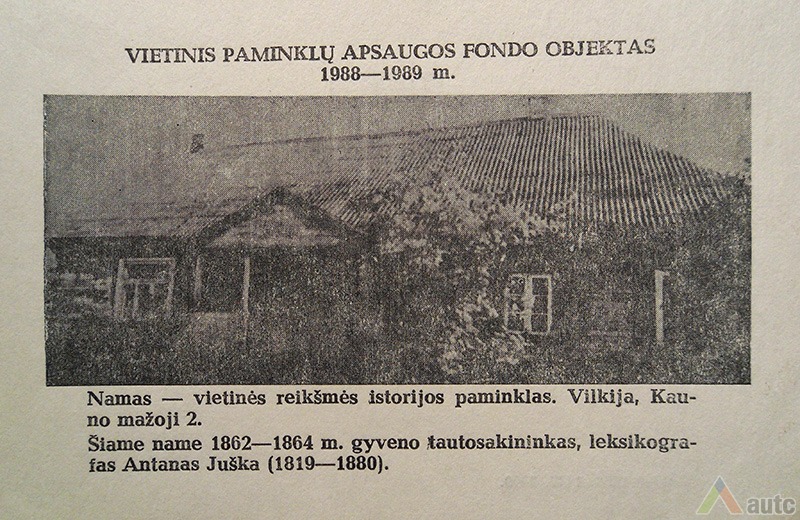 Daugiau kaip du šimtmečius pastatas išbuvo bažnyčios žinioje, klebonijoje gyveno dvasininkai, glaudėsi bažnyčios tarnai, iš kurių ryškiausią pėdsaką paliko 1862-1864 m. čia gyvenęs vienas žymiausių lietuvių tautosakininkų, etnografas, kalbininkas ir kunigas Antanas Juška – asmenybė, išlikusi ne vienos kartos atmintyje. Kunigaudamas Vilkijoje A. Juška rinko ir užrašinėjo lietuvių liaudies dainas, klebonijoje rinkdavosi dainų pateikėjos, „kuri iš moterų arba mergaičių daugiau ir gražesnių padainuodavo jam dainų, gaudavo dovanų: žiedą, šaukštą, saldumynų, riešučių ir t.t. Tokią dainininkę pramindavo „dainų karaliene“[3]. Gyvendamas Vilkijoje A. Juška taip pat rinko žodžius lietuvių-lenkų kalbų žodynui: „Kai Vilkijoje ėmė darytis pirmąją savo žodyno kopiją, technikos jo nežinota. Prisižodžiautąją medžiagą jis varstęs ant vielų ir šniūrelių, ištiestų nuo sienos iki sienos. Žmonės matydami pilnus kambarius prikarstytų popierėlių, ėmę skelbti apie „nemieruotą kun. Juškos skarbą“, kad net džiovinti ar vėdinti reikia „bumaškos“. O jis buvo grynas neturtis, niekados neturėjęs gero beneficiumo ir ką gaudamas, išleidžiąs mokytai folklorininko manijai rinkti ir rinkti be galo ir saiko, vis papildinėti, papildinėti savo rinkinius turtais, kurių vis naujų, vis įdomesnių aptikdavo naujose vietose“[4]. Apkaltintas ryšiais su sukilėliais, 1863 m. A. Juška iš čia išvežamas į Kauno kalėjimą.