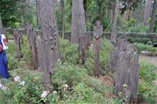 Šiaurės-vakarinėje kapinių dalyje, pačiame kampe, yra nedidelis aptvaras, kuriame tarsi pavyzdžiai sustatyti krikštai – įvairiai profiliuotos medinės lentos, kurios vaizduoja augalų, paukščių, žirgų ir kitus siluetus. Anot vietinių Nidos gyventojų, po karo iš kapinių buvo surinkti paminklai, daugiausia krikštai, sukrauti į sunkvežimį ir išvežti. Nemaža dalis kapų esti visai be paminklų. Yra ir tokių, kur galvūgalyje pastatytas kryžius, o kojūgalyje – krikštas. Vis tik dauguma kapinėse esančių krikštų sustatyti galvūgaliuose[2].