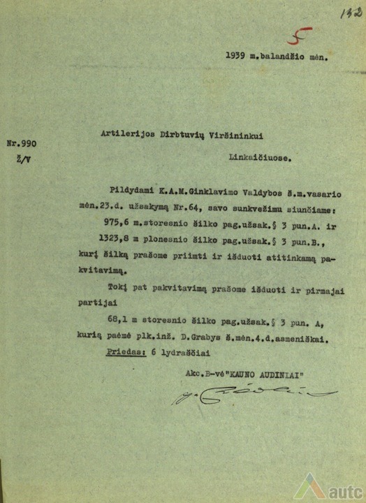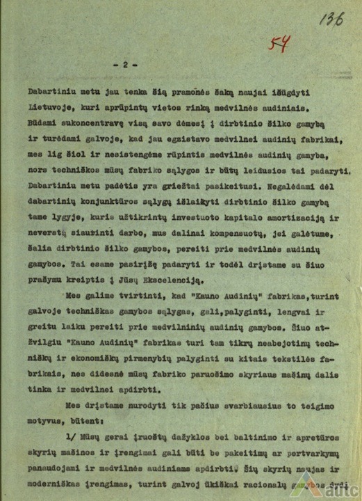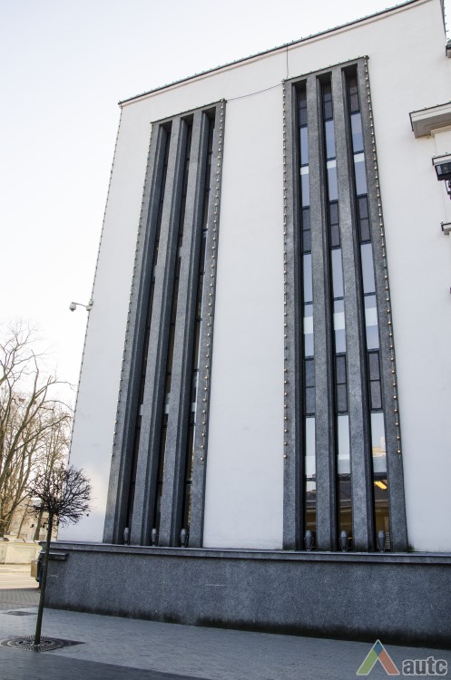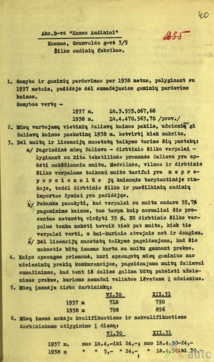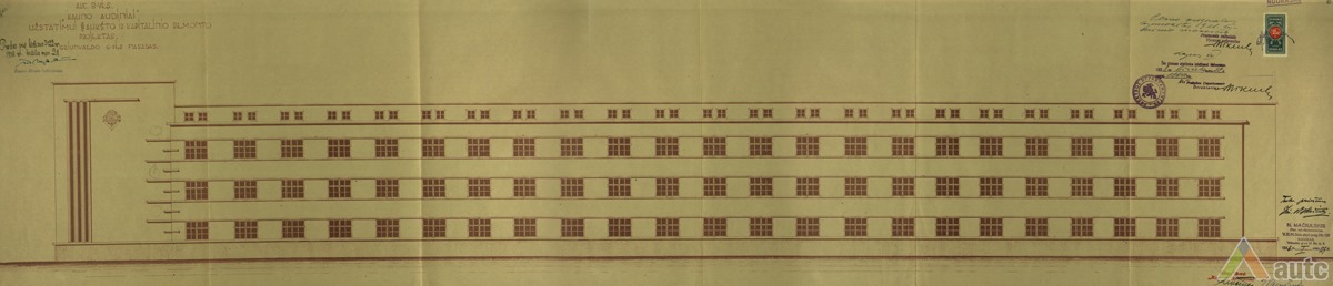 Ilgai netrukus vienas stambiausių tekstilės cechų Lietuvoje nusprendė plėstis ir racionalizuoti gamybą, nes esamos patalpos jau buvo per ankštos. 1938 m. gautas leidimas pagal N. Mačiulskio projektą užstatyti „Kauno audinių“ fabriko trečią ir ketvirtą aukštus bei kapitaliai remontuoti (Gedimino ir Griunvaldo gatvėse) fasadus[7]. Po daugiau kaip 600 000 litų kainavusių statybų, pastatas įgavo dabartinį vaizdą. „Kauno audiniai“ iki 1962 m. audė šilkinius, pamušalinius ir krepinius suknelių audinius.