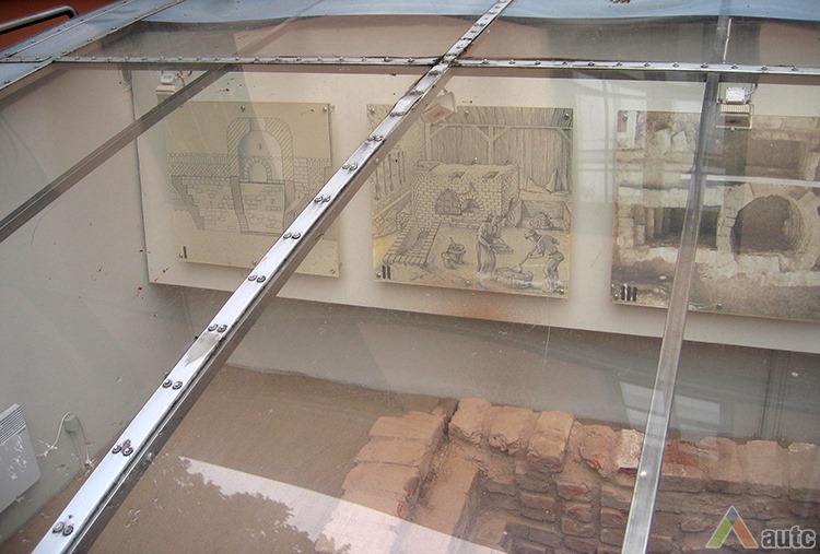 Aplink krosnį susidariusiame sluoksnyje rasta varpo nuolauža, lydymo metu susidarę šlako gabalėliai, daug stiklinių indų šukių. Tokia krosnis galėjo atlikti kelias funkcijas. Tą liudija prie jos glaustos nedidelės stačiakampės krosnelės su skliautu liekanos. Padarius mikrostruktūrinius metalo tyrimus, nustatyta bronzos sudėtis. Analizė rodo, kad krosnis galėjo būti naudojama tiek varpams, tiek ir artilerijos pabūklams lieti. Tad šis įrenginys gali būti siejamas ir su 1616 m. seimo nurodymu įsteigti Kaune ginklų dirbtuves, kadangi yra pastatytas miestui priklausančių pastatų teritorijoje[10].