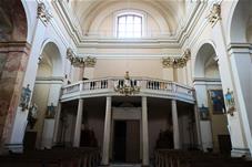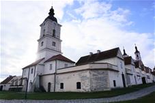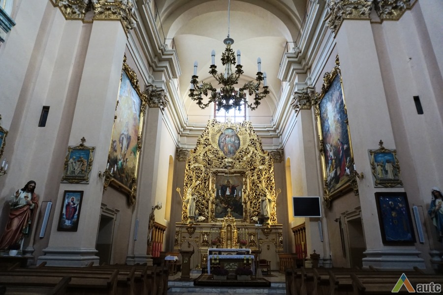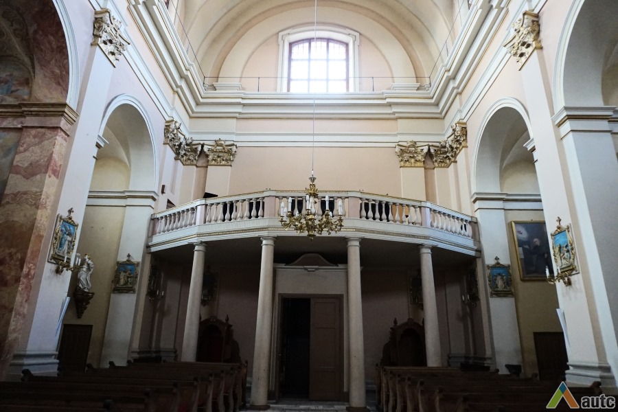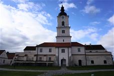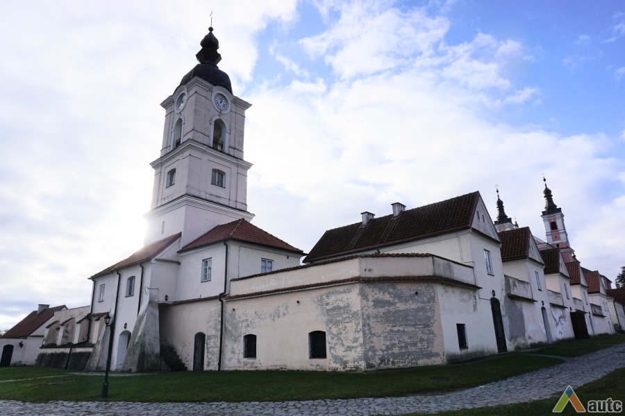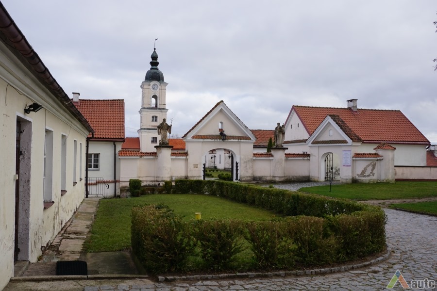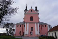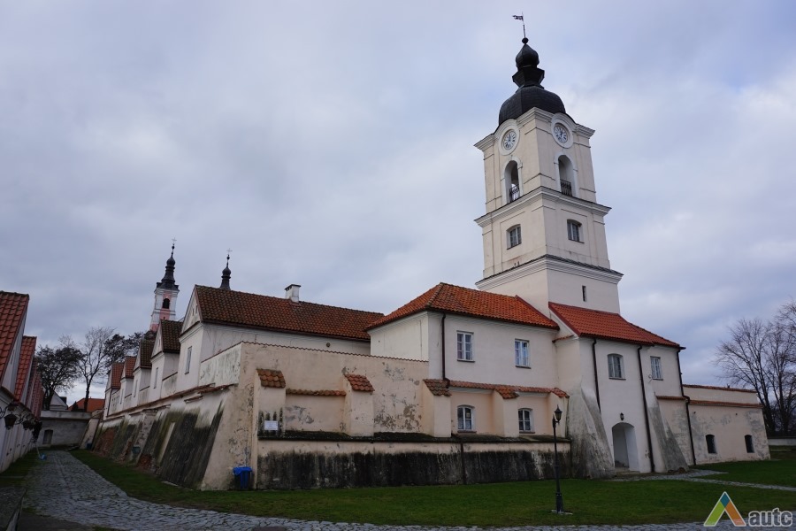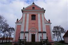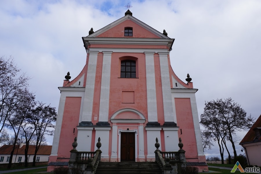 Pirmoji bažnyčia, statyta dar XVII a. antroje pusėje, buvo medinė, dabartinė dvibokštė vėlyvojo baroko bažnyčia iškilo 1745 m. Bazilikos tipo trinavės bažnyčios rytinis ir vakarinis fasadai puošti piliastrais ir trikampiais frontonais. Per Antrąjį Pasaulinį karą buvo nugriauti bokštai rekonstruoti šeštajame dešimtmetyje. Dabar atstatytas visas vienuolyno ansamblis, čia įkuriant poilsio namus.