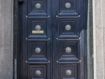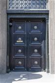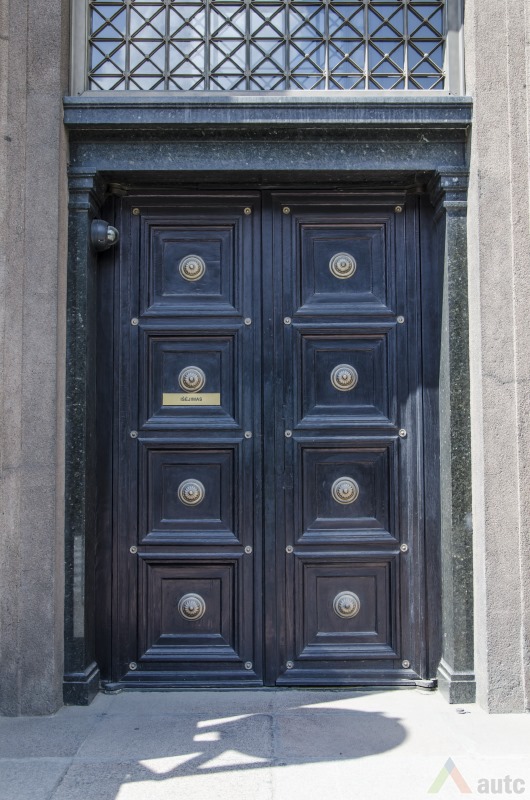 Rytinio (Maironio g.) fasado portalai identiški su masyviomis dvivėrėmis durimis. Klasicistinės išraiškos portalo duris su stačiakampiais viršulangiais rėmina profiliuotas tinko apvadas. Virš jų išlikę bronzinių raidžių užrašai ,,Lietuvos Bankas“. Portalų kompozicijos užbaigiamos pusapskričių arkų nišomis su augalinio dekoro horeljefais. Įsprūdinės konstrukcijos durys šiek tiek įgilintos, angokraščiai dekoruoti juodo akmens piliastrais ir karnizu. Durys taip pat nudažytos juodai, įgilintas kvadratines įsprūdas puošia bronzinės rozetės. Puošnumo durims suteikia taip pat ir ažūrinės viršulangio grotelės. Už paradinių durų yra įmontuotas vienas pirmųjų sukamų durų mechanizmas.