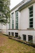 Naujasis pastatas buvo būdingas pramoninei funkcionalistinei architektūrai ir panašiu laikotarpiu Europoje statytoms kitoms radijo stotims. Sudėtingo plano, daugiatūrio statinio asimetriškame pagrindiniame fasade akcentuojamas lenktais jį supančių šoninių dalių kampais išreikštas įgilintas didysis tūris ir trys masyvios jo langų vertikalės. Šioje pastato dalyje buvo didžioji patalpa, kurioje numatyta įrengti siųstuvų valdymo salę, kurios viena pusė skirta trumpųjų, o kita – viduriniųjų bangų siųstuvams. Šalia salės, dešiniojoje pastato pusėje – nemaža patalpa siųstuvo „maitinimui“[4].