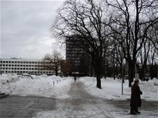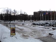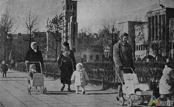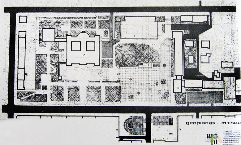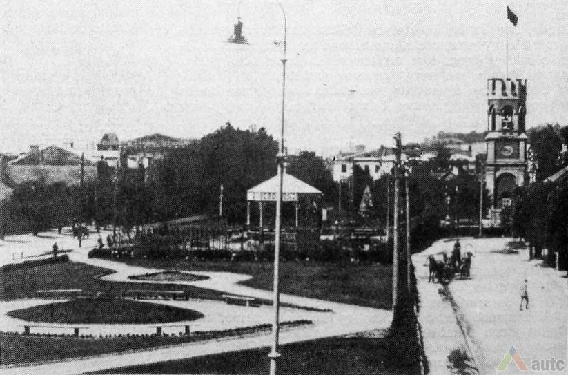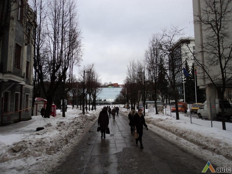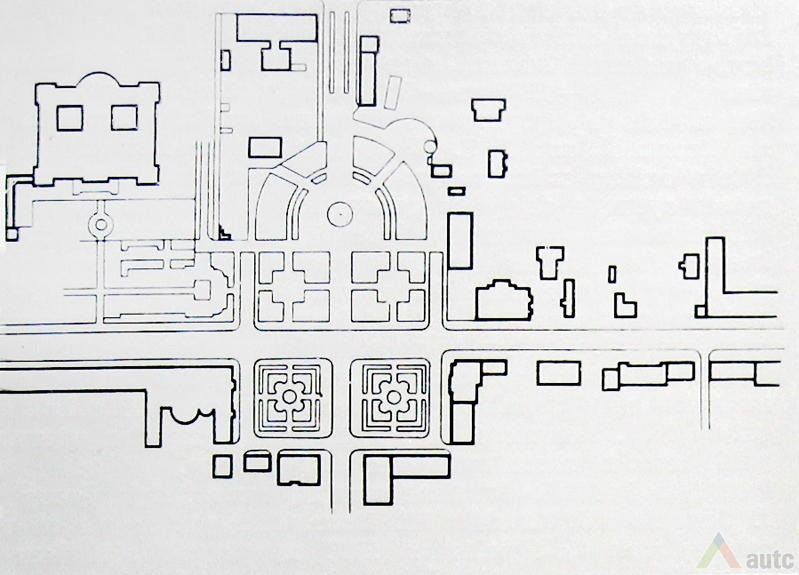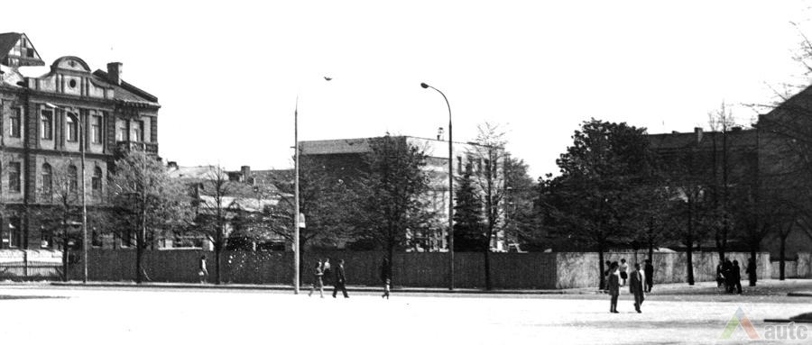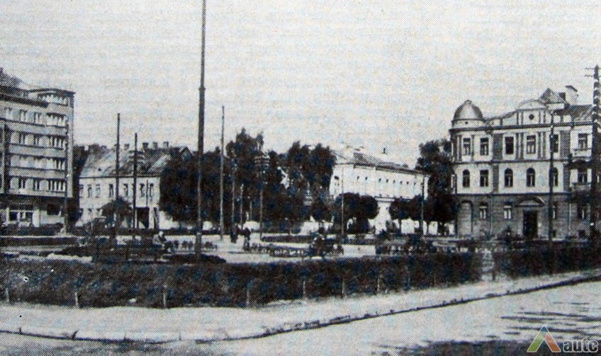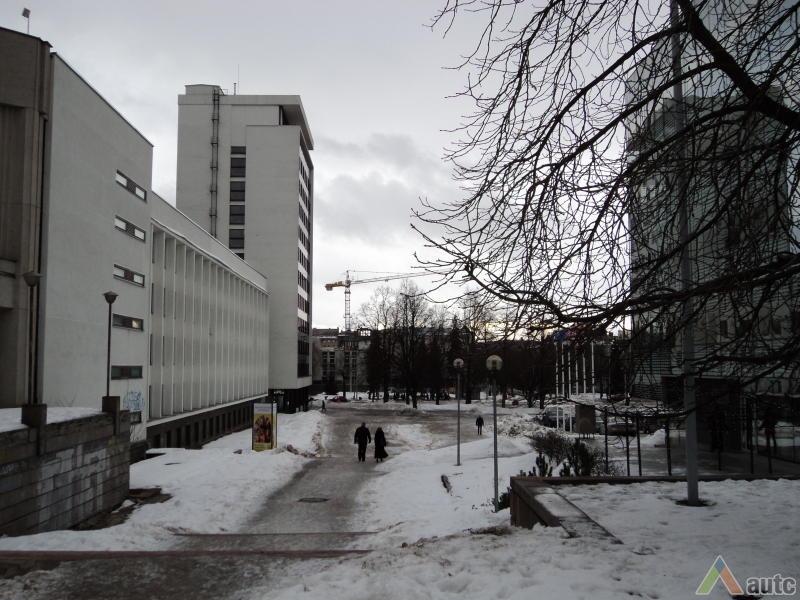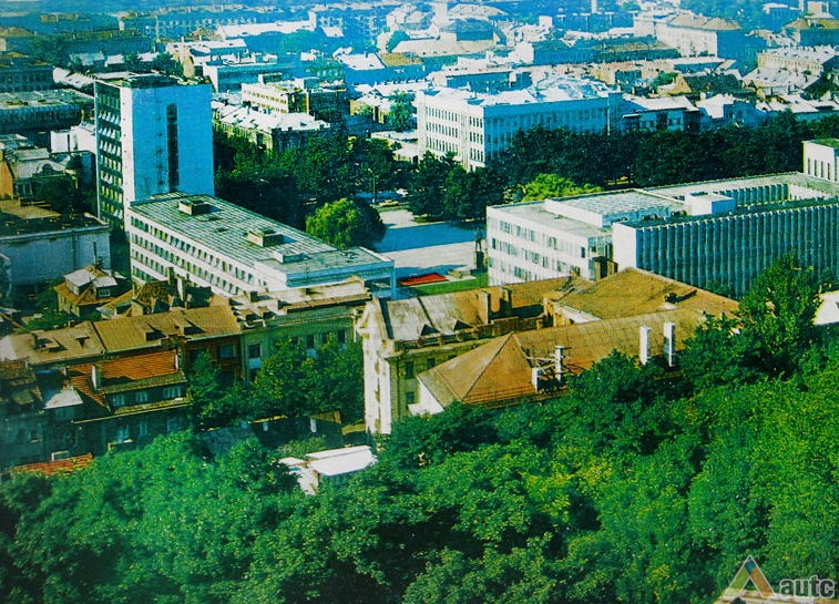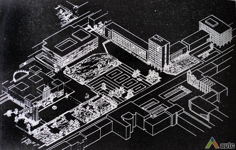 Kitos dvi plokštumos išdėstytos pietinėje S. Daukanto g. pusėje. Viena ties KTU centriniais rūmais buvo skirta automobiliams statyti, o kita, S. Daukanto g. rytuose, pastačius Politinio švietimo namus (dabartinius VDU centrinius rūmus) pavirto skveru ir savotiška „avanaikšte“[3], po kuria ketinta įrengti 100 vietų požeminę automobilių aikštelę. S. Daukanto gatvės perspektyvinę liniją šiaurėje užsklendžia MSPI rūmai – asketiškų formų, minimalizmo principais suprojektuotas statinys. Jo ryškūs gabaritai kiek užstoja Žaliakalnio šlaitus, tačiau jis savo ruožtu yra tam tikra ašis ir visos aikštės akcentas. Vis dėlto jungtis su Žaliakalnio rajonu nenutraukta. Perspektyvinę liniją į kalvos siluetą atspindėjo ir tuomet aikštėje stovėjusi Lenino skulptūra, nežymiai patraukta į rytus nuo šiaurės – pietų kompozicinės ašies – menamos S. Daukanto gatvės tąsos. Žvelgiant į tuometį aikštės akcentą – Lenino skulptūrą, jos fone atsiveria aukštyn per V. Putvinskio gatvės pastatų siluetus kylanti ir ties Prisikėlimo bažnyčios bokštu užsibaigianti perspektyvinė linija.