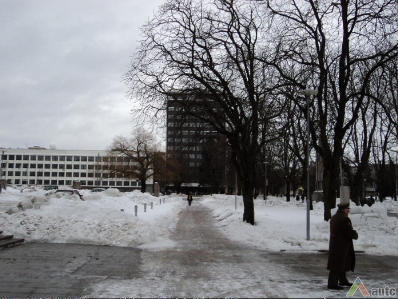 Atgavus nepriklausomybę, Karo muziejaus sodelyje atstatyta skulptoriaus J. Zikaro „Laisvės“ statula bei kiti anksčiau čia stovėję nacionaliniai paminklai. Gerokai pakeistas MSPI eksterjeras įgavo „slick-tech“ krypties bruožų ir kiek pažeidė aikštės šiaurinės dalies architektūrinį vientisumą.